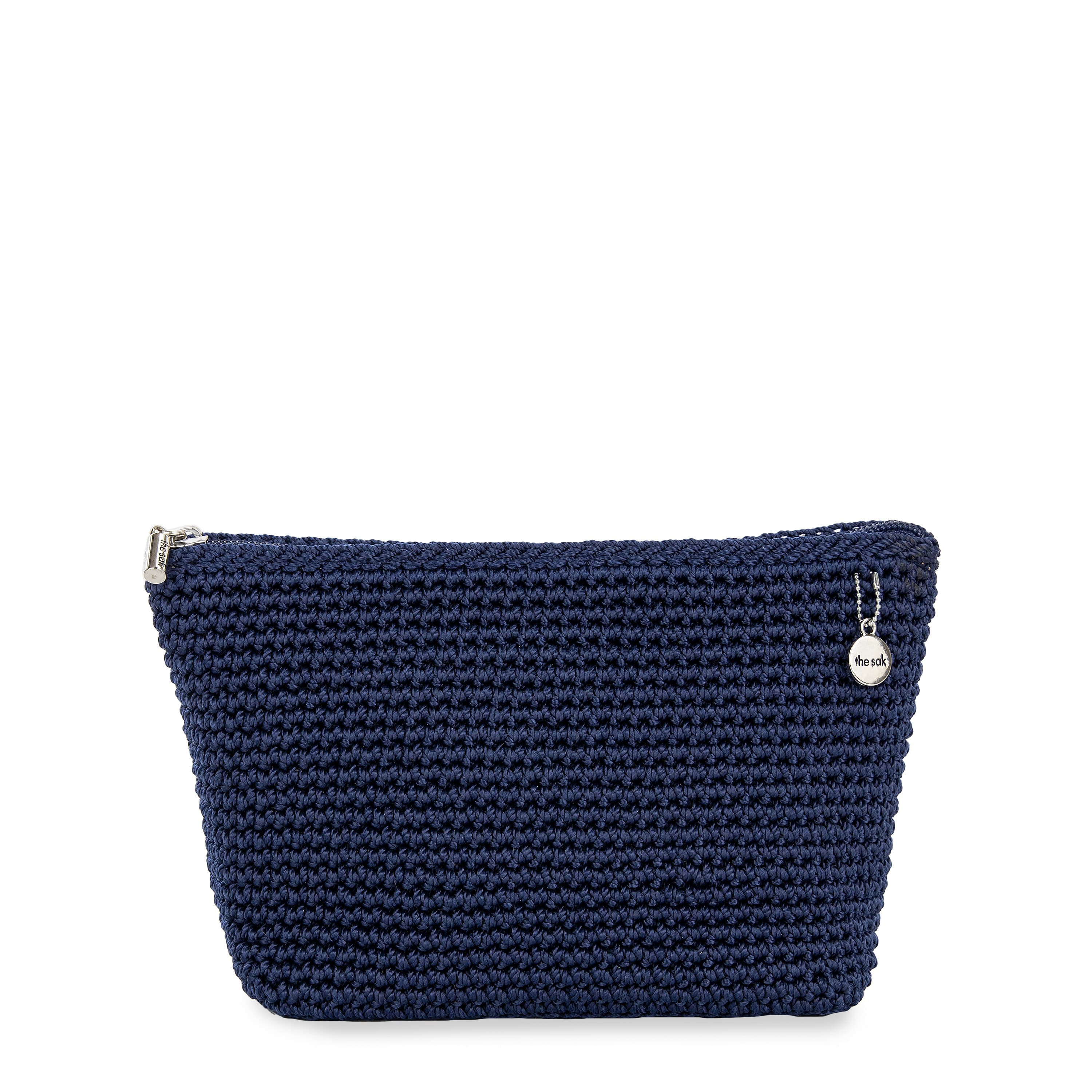 Travel savvy with the Essential Pouch, issued in our signature, sustainable hand crochet. Lightweight, durable and easy to pack, this carryall supplement and suitcase staple is crafted with zip and slip pockets for easily organizing your keys, lip balm and other miniatures. Recycled REPREVE® lining ensures you can tote cosmetics and toiletries worry free.