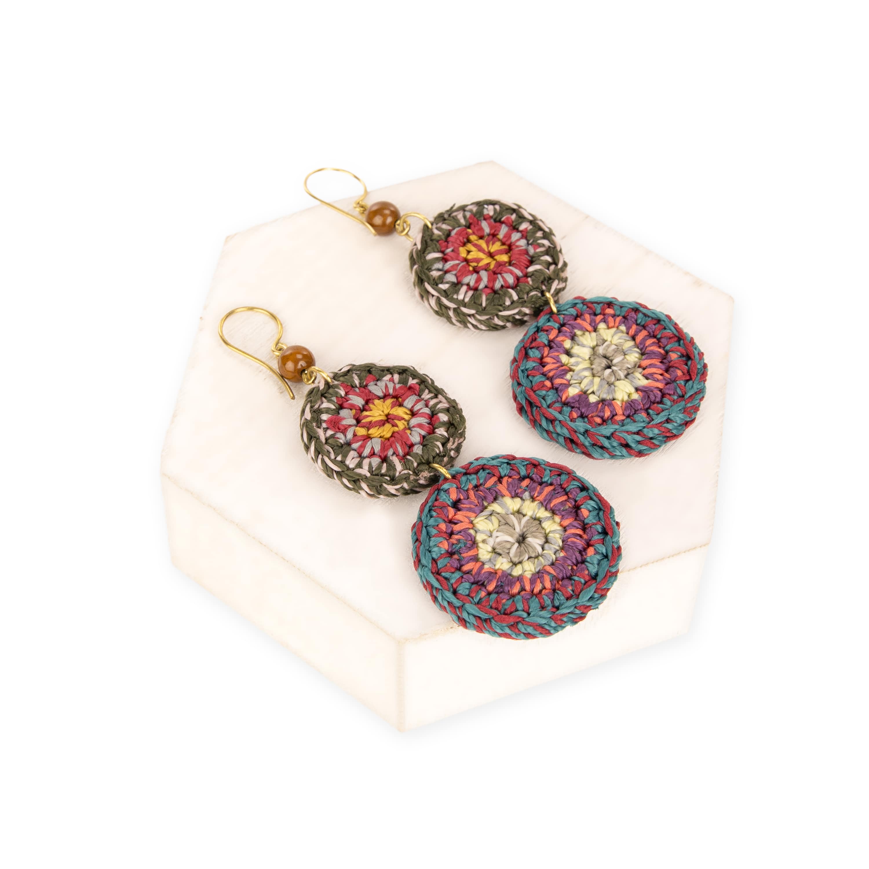 • Please expect variations in color, as our yarn is made of ocean-bound recycled plastic and discrepancies are unavoidable. Due to the handmade techniques used by each artisan, variations may occur, making each earring completely one-of-a-kind