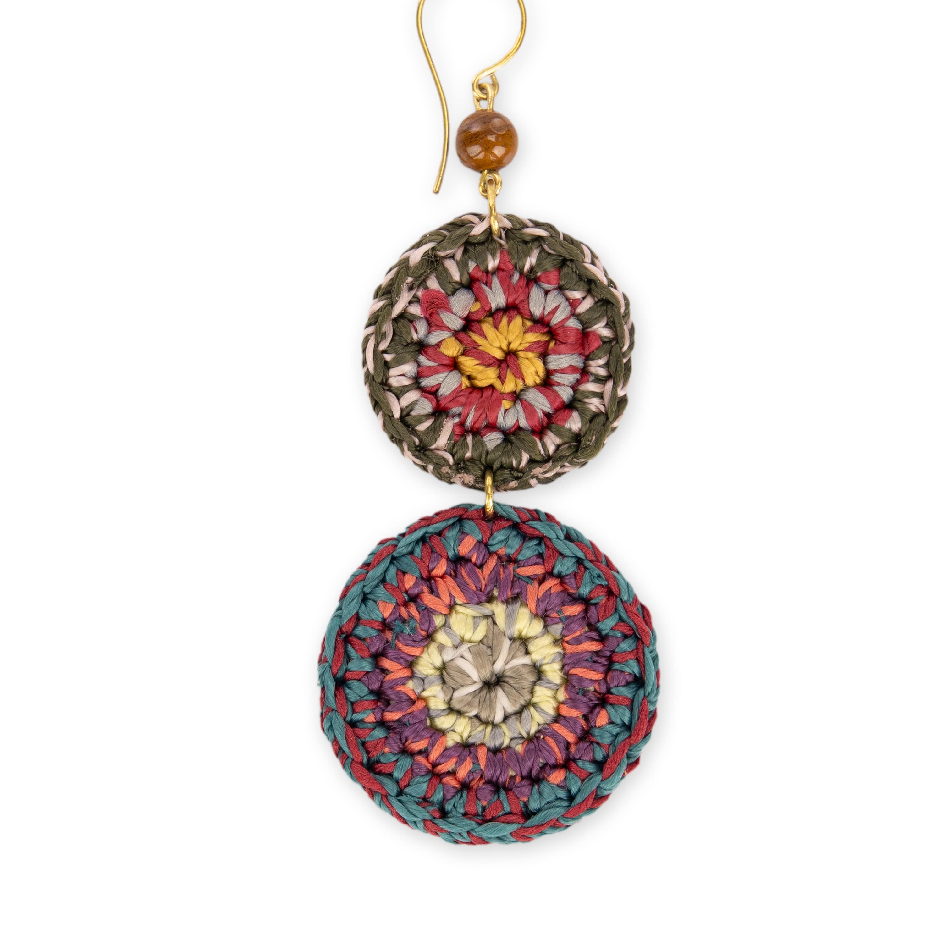 Jasper Double Disc Earrings - Hand Crochet - Sunset Stripe