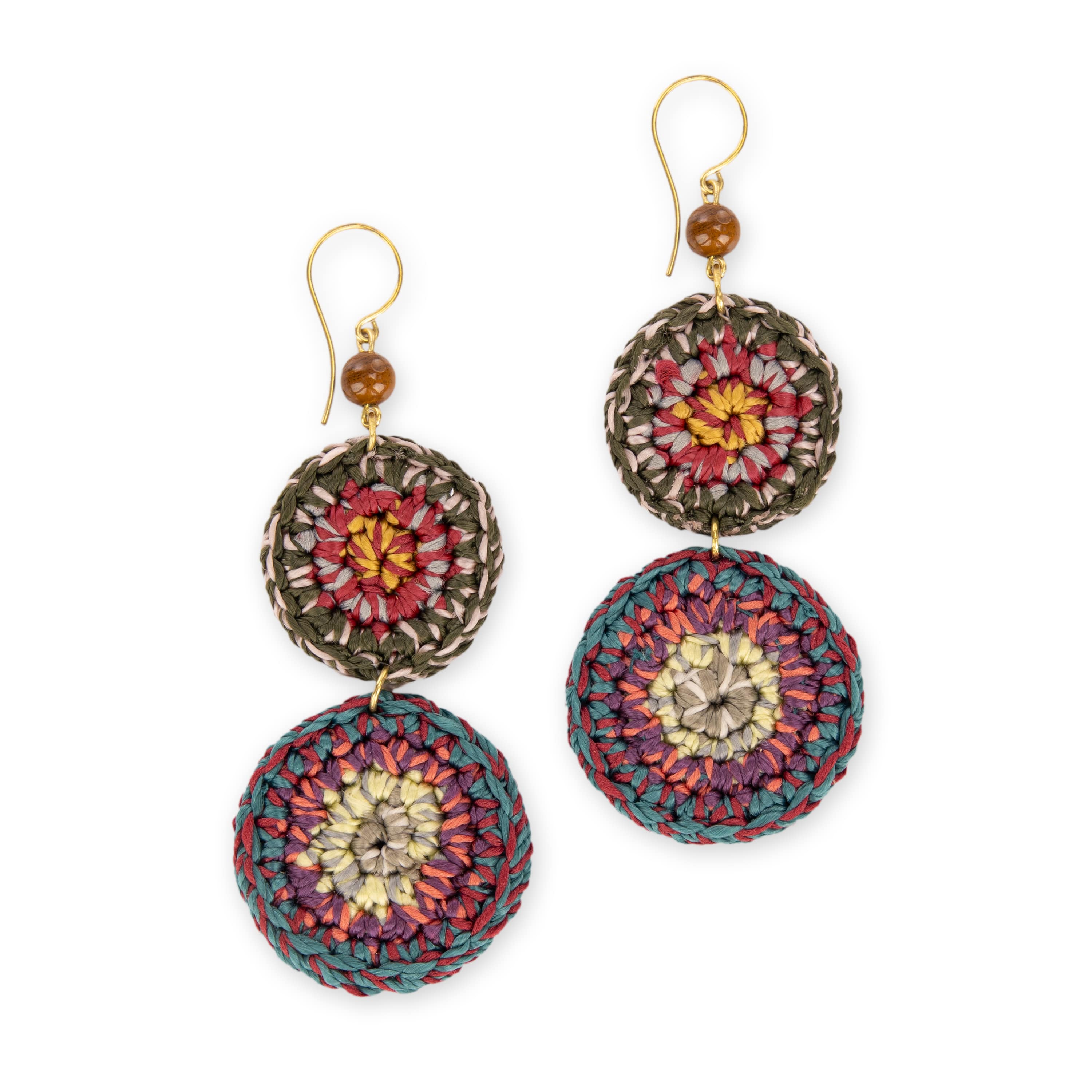 The Sak Jasper Double Disc Earrings - Hand Crochet - Sunset Stripe
