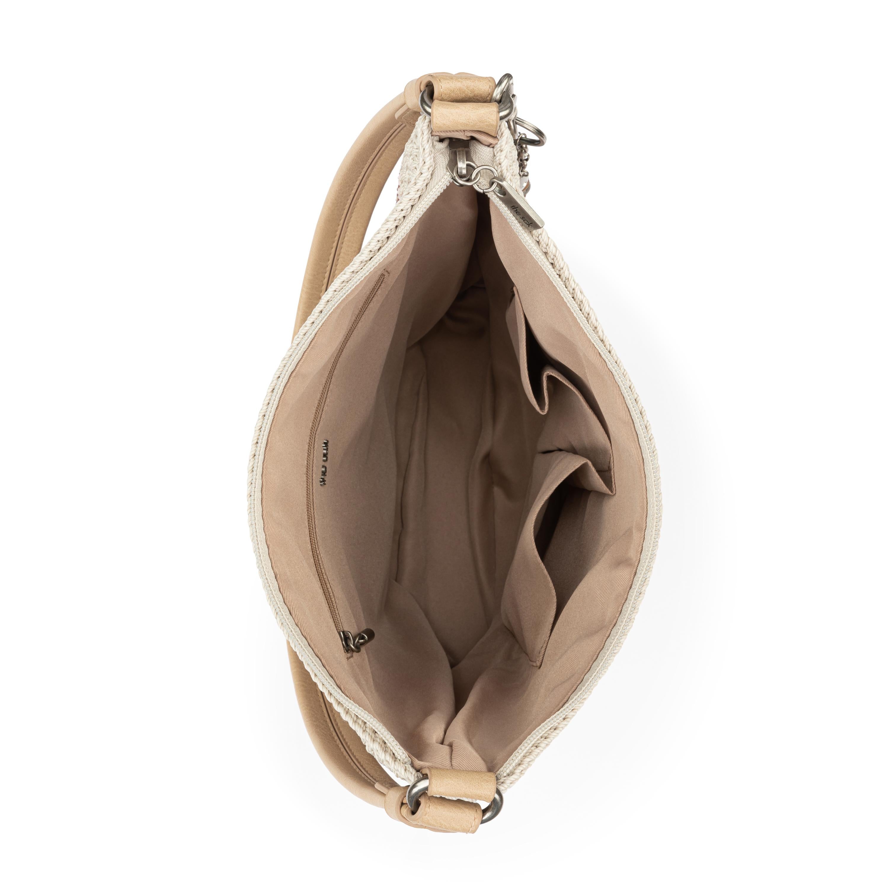 Skillfully handcrafted by artisans with yarns made from recycled ocean-bound plastics, the Sequoia Crochet Hobo delivers modern functionality stylishly and sustainably. A roomy, lightweight bag designed for everyday use, this single-strap, zip-top style features plenty of pockets, a fully lined interior and a detachable keychain.