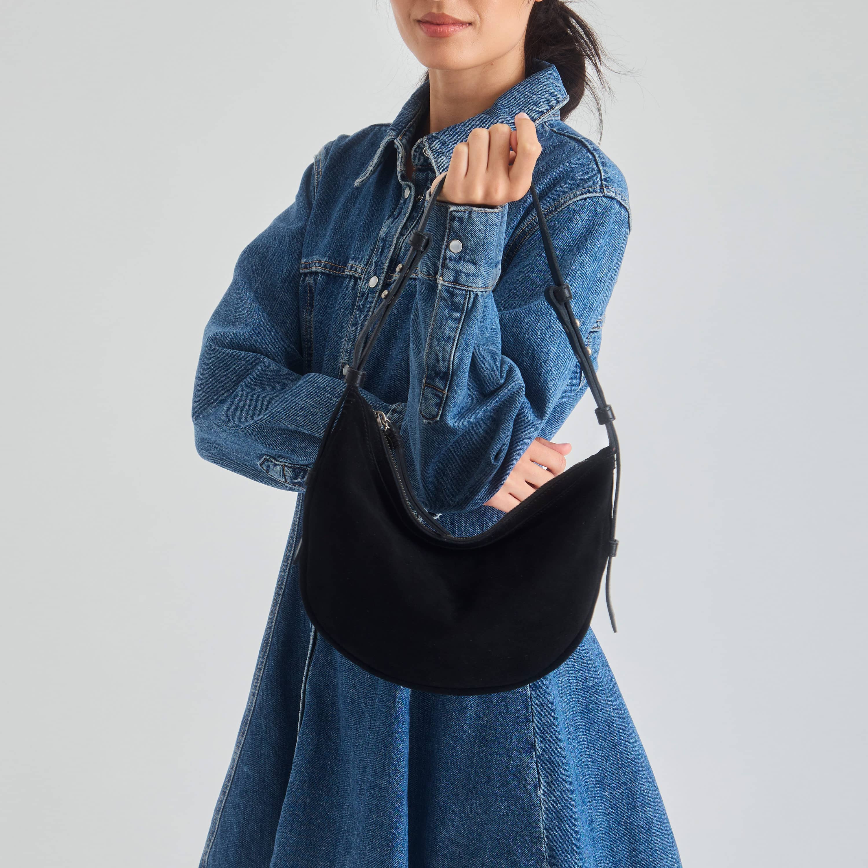 Tess Shoulder Bag - Leather - Black Suede